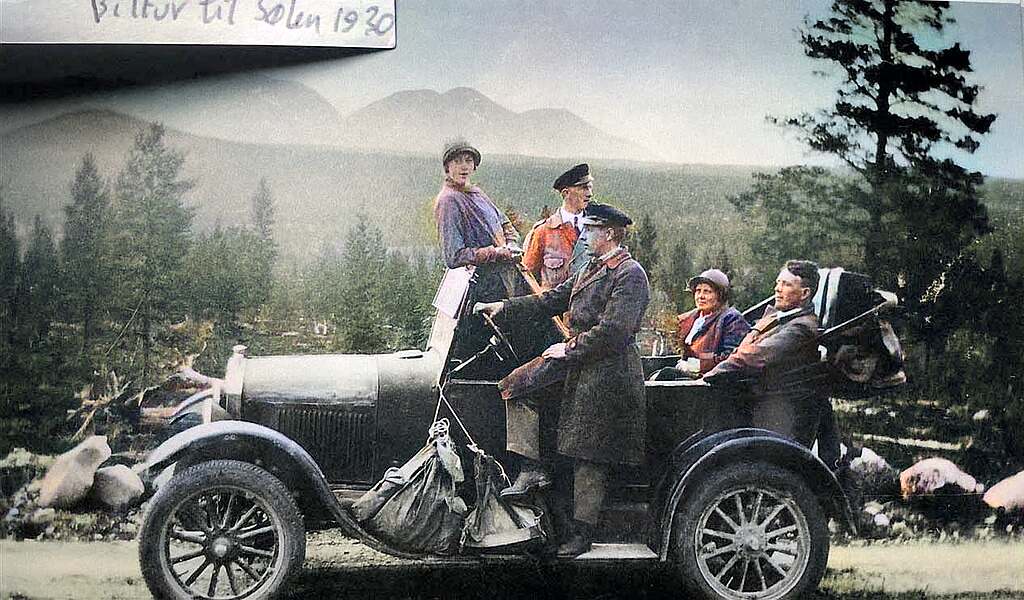 < ser ikke så gammelt ut når det er pålagt farger, men det er fra juli 1908- kongebesøk som Jacob Breda Bull også skriver om i noen av sine bøker. Her link på en av dem i lyd som beskriver livet for fattigfolk for nesten 150år siden i norge. klikk på bildet for å høre om "oline kroken"